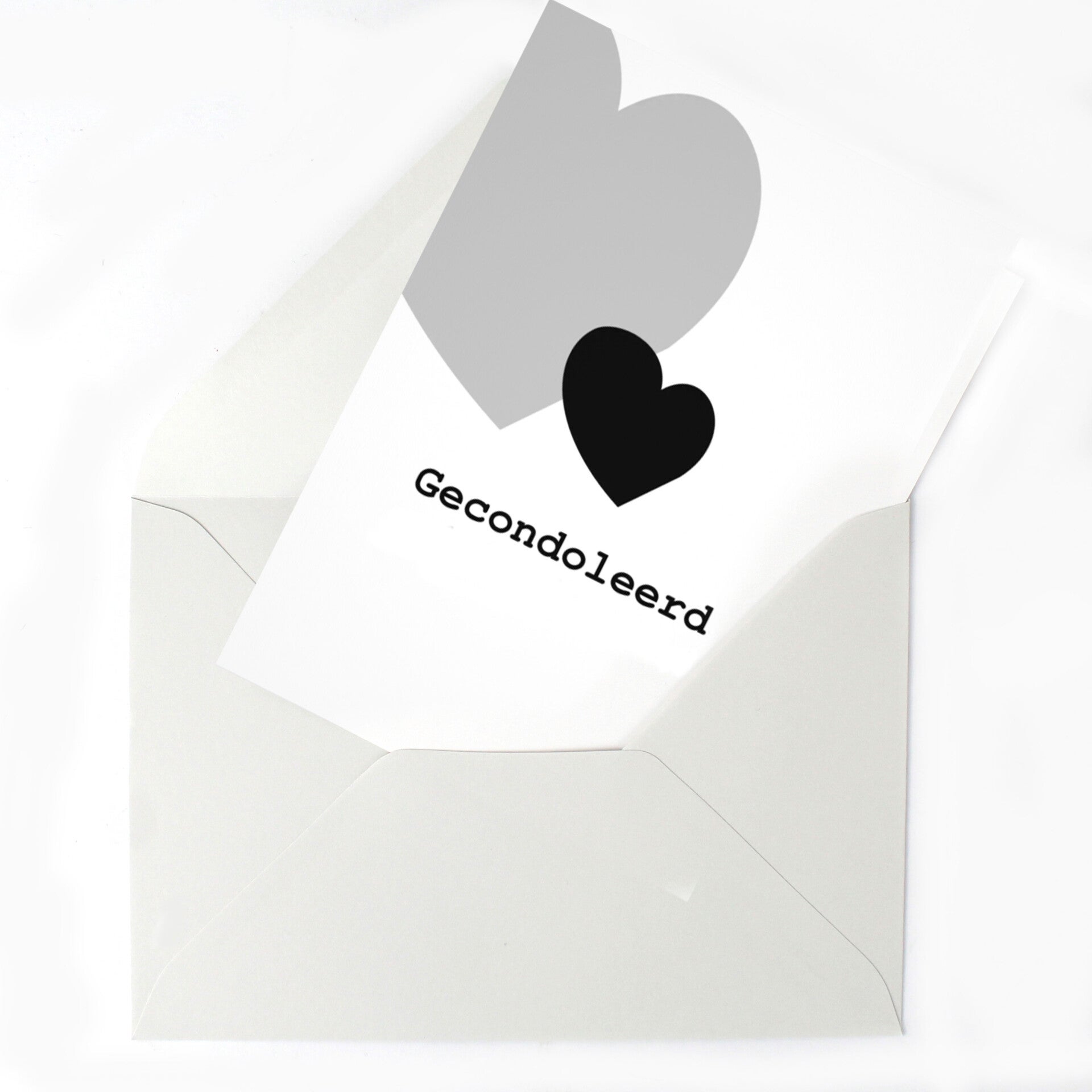 Stuur een oprechte en meelevende groet met deze kaart, voorzien van een ingetogen illustratie van twee hartjes en de tekst “Gecondoleerd”. Een klein en respectvol gebaar om je medeleven te tonen wanneer het verlies groot is en woorden moeilijk te vinden zijn.